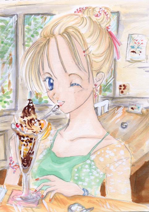 コピック画です。幸せそうにチョコのパフェを